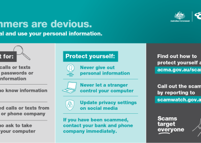 Always be wary about scam calls that come from people you don’t know. If you think you’ve been scammed, tell your bank and Telair immediately. Report scams to Scamwatch.